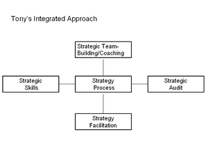 Stategy Consulting -Tony as Strategy CatalystTony has made a very real and lasting contribution to the organisations he has worked for in both the private and public sector. For instance he facilitated the original work on Tesco's then embryonic strategies to set up its Non Food Operations ( now over £10 billion of turnover) to its new formats :Tesco Express (now with around a thousand stores), Tesco Metro and Tesco Extra. He played a major role in The Met police's HR strategy, and in Ford's acquisition of its four wheel drive the Discovery from BMW, and in Easyjet's strategy for baggage charging. He facilitated the Corporate Planning review of John Menzies plc which led to a successful growth strategy. He also helped Rafaiissen Banking Group-a major European Bank to upgrade its strategic planning process and to train its senior executives on this across Europe. Diageo, too, rolled out his Strategic Option Grid Process throughout the Group. He has facilitated strategy in companies of all sizes and in entrepreneurial environments too. He also has Non Executive experience in helping an entrepreneurial Heath Club Group to set up a new chain of budget priced health clubs. Case Study Professional Services Organisation: This case illustrates the blending of consulting, strategic process improvement and learning that is a part of Tony's unique style "This professional services company was a medium sized organisation facing major strategic change. Tony ran a number of strategic workshops over three years to equip its top team and the next level down to process considerable challenges and to manage over a very difficult period. His help was the catalyst was instrumental in avoiding what seemed like an inevitable and large fine from its regulator, to reduce its costs and to prepare for major restructuring and change. The management team were trained in his techniques and the process helped them to be cohesive at a time of very substantial pressures, and to adopt the techniques into everyday management processes." |